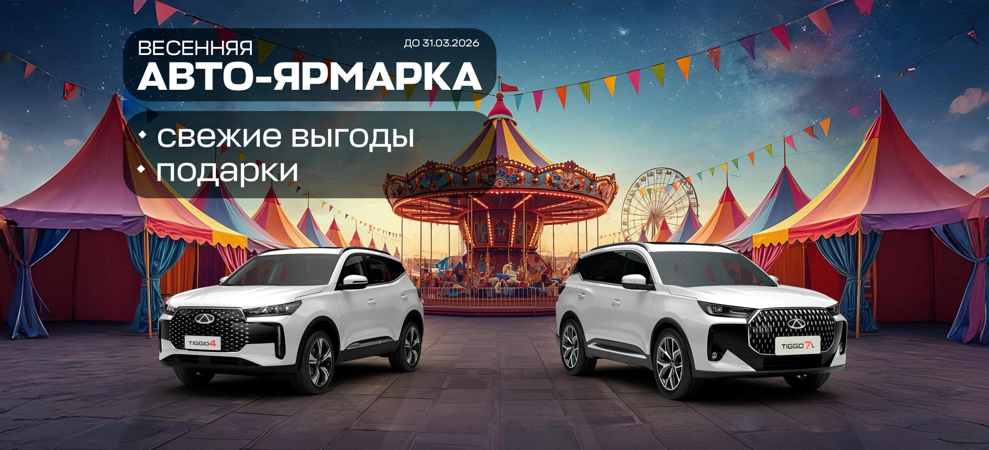 На «Авто‑ярмарке» вас ждут скидки до -25%, свежие автомобили 2026 года — откройте для себя новинки автопрома и выберите модель по душе. Кроме того, мы подготовили специальные предложения на машины 2025 года выпуска. И всех их можно приобрести в авторассрочку от 0,01% до 84 месяцев.