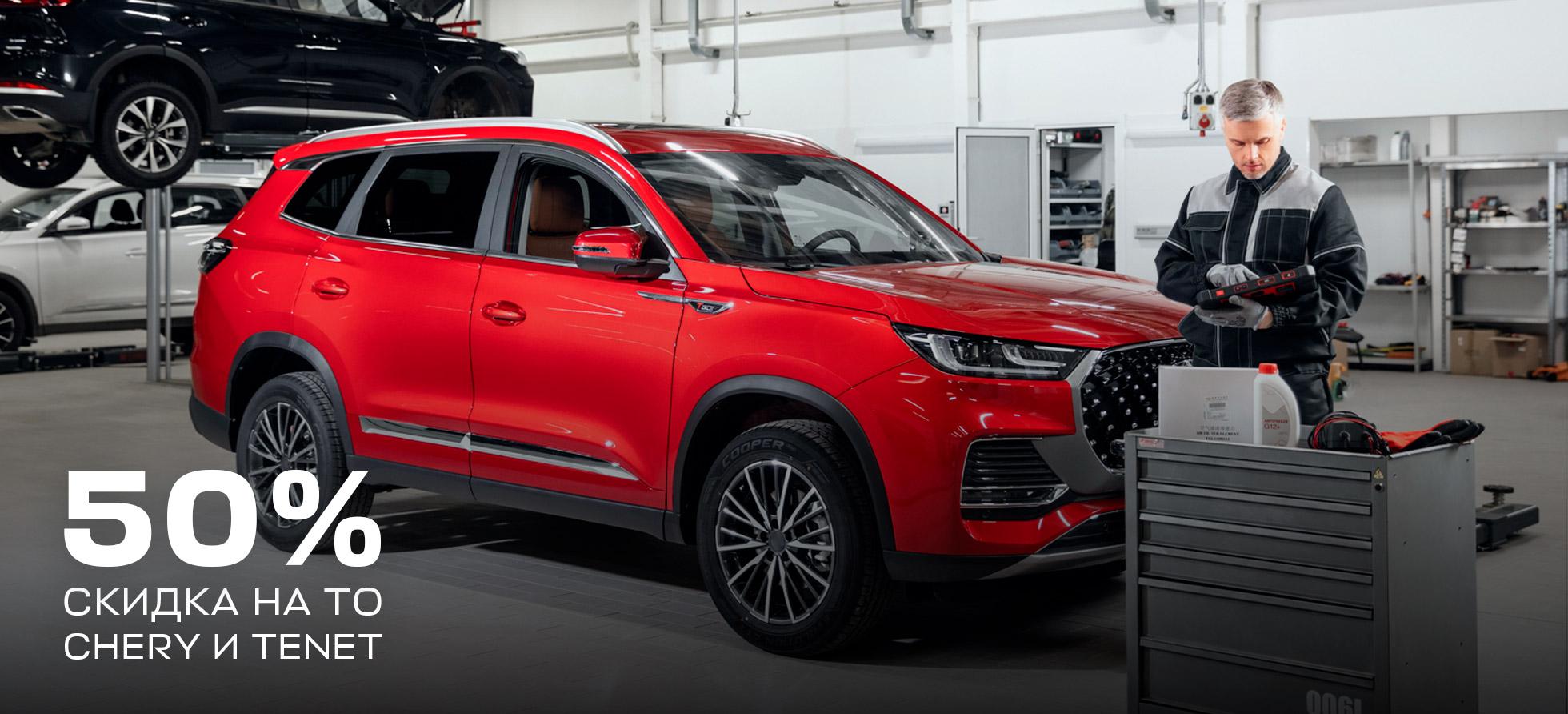 С этой акцией вы сэкономите половину стоимости на всех видах работ при плановом ТО. Предложение распространяется на все модели CHERY и TENET независимо от года выпуска. Ваши автомобили получат профессиональное обслуживание от квалифицированных специалистов по специальной цене.
